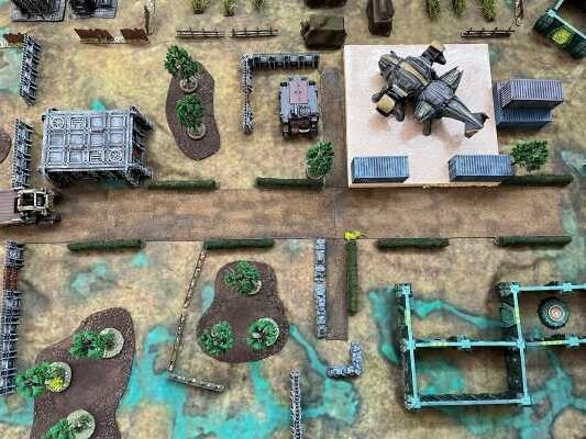 In hindsight this worked well, though the main road in the center of the board did create a bit of a firing lane. In addition I think removing 6″ from the width of the board would have help create even more carnage.